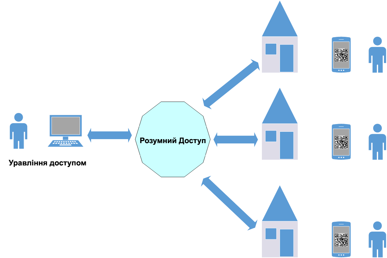 ✔ Система надає функціональний інтерфейс видачі доступів у приміщення за QR кодом, що дає можливість керуючому оперативно надавати доступ відвідувачеві віддалено та в будь-який час доби.